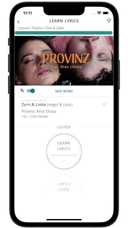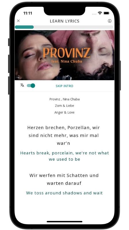 In addition to reading lyric translations, you can now learn German with music and lyrics from your favorite artists.