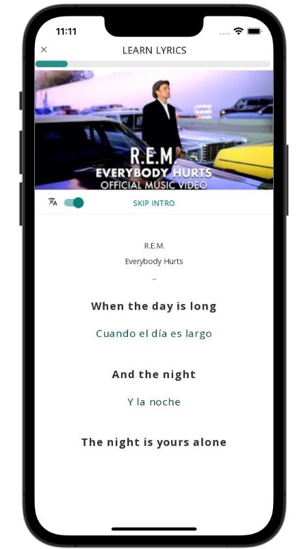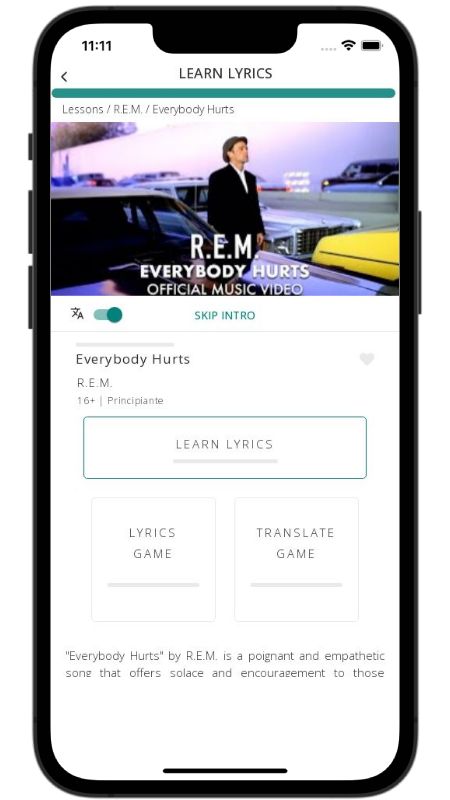 In addition to reading lyric translations, you can now learn English with music and lyrics from your favorite artists.