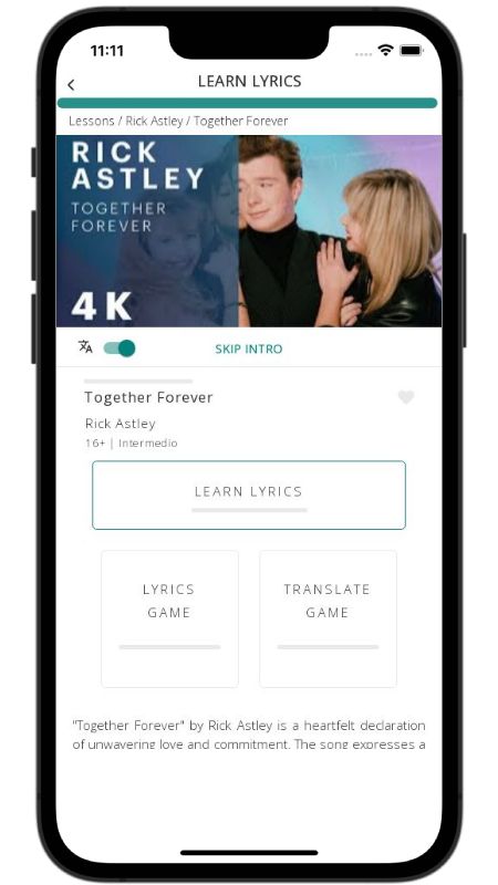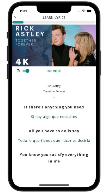 In addition to reading lyric translations, you can now learn English with music and lyrics from your favorite artists.