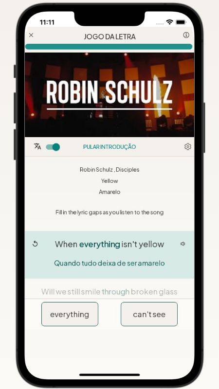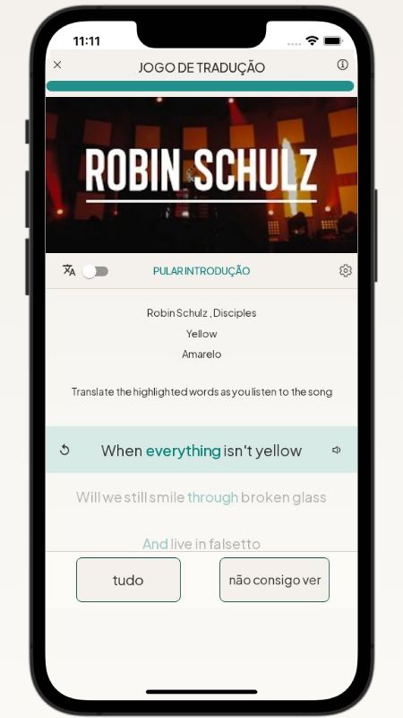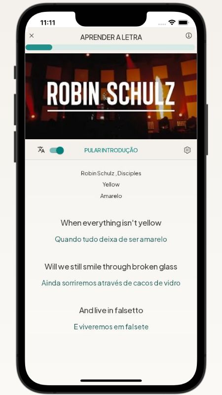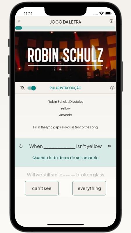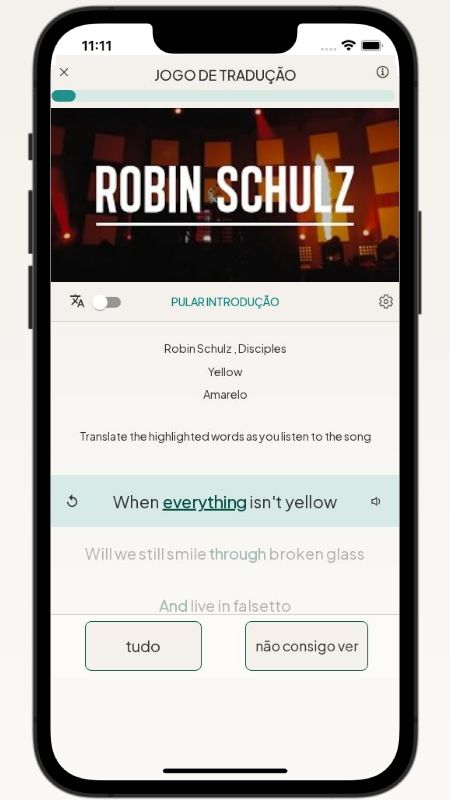 Below, I translated the lyrics of the song Yellow by Robin Schulz from English to Portuguese.