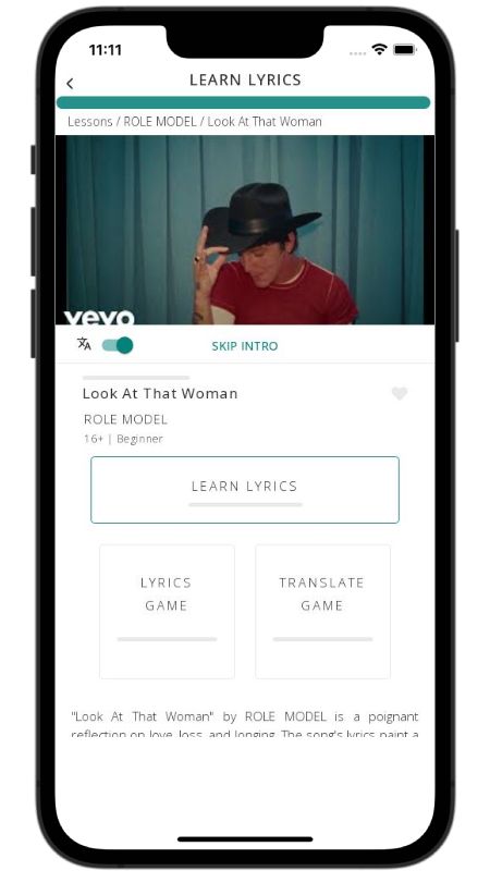 In addition to reading lyric translations, you can now learn English with music and lyrics from your favorite artists.