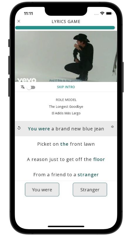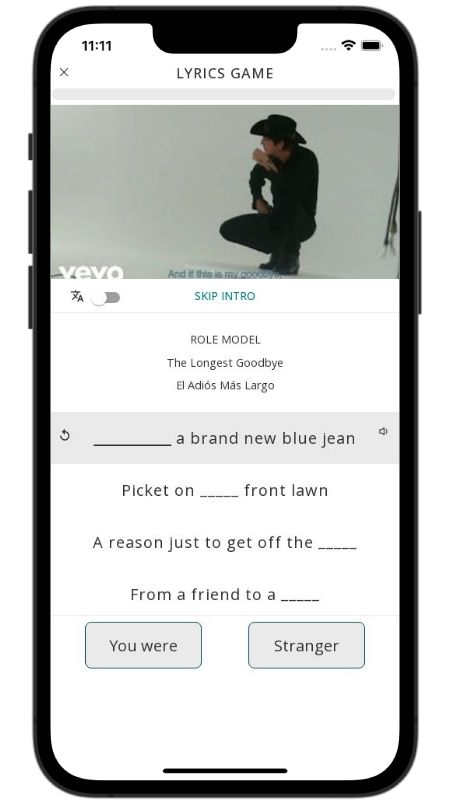 In addition to reading lyric translations, you can now learn English with music and lyrics from your favorite artists.