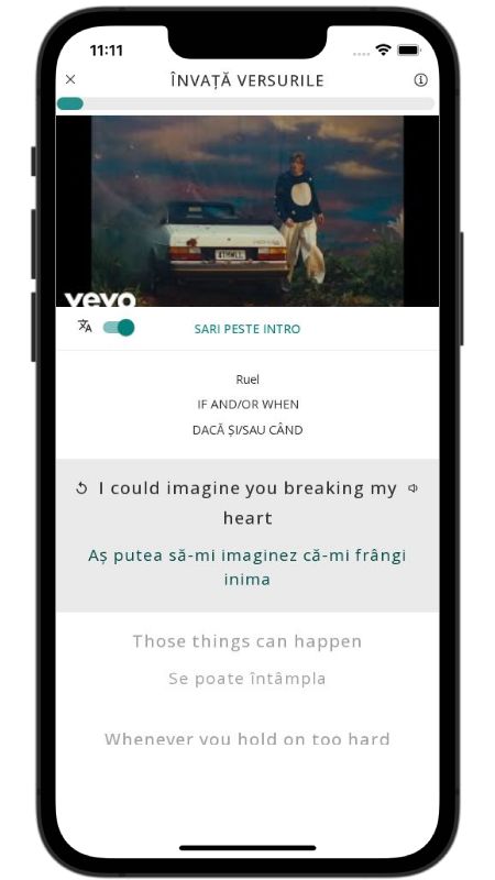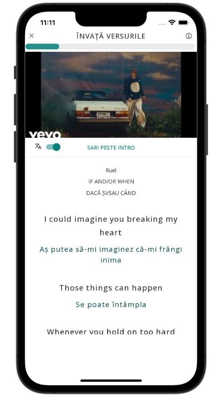 In addition to reading lyric translations, you can now learn English with music and lyrics from your favorite artists.