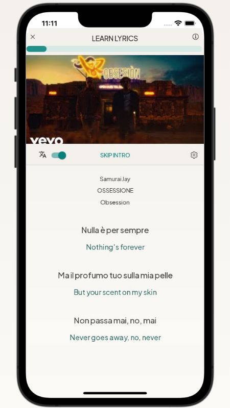 In addition to reading lyric translations, you can now learn Italian with music and lyrics from your favorite artists.