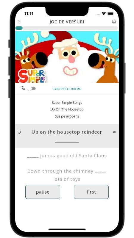Cântecul surprinde într-un mod simplu și vesel toată cursa nocturnă a lui Moș Crăciun: de la așezarea cadourilor sub brad și până la gustarea rapidă de biscuiți înainte ca sania să-și ia din nou zborul pe cerul plin de stele. Repetițiile îl fac ușor de memorat, iar imaginile colorate sunt perfecte pentru a exersa vocabularul de Crăciun și verbele la prezent. Cântă alături de Moșul, antrenează-ți pronunția și lasă-te purtat de ritmul festiv!