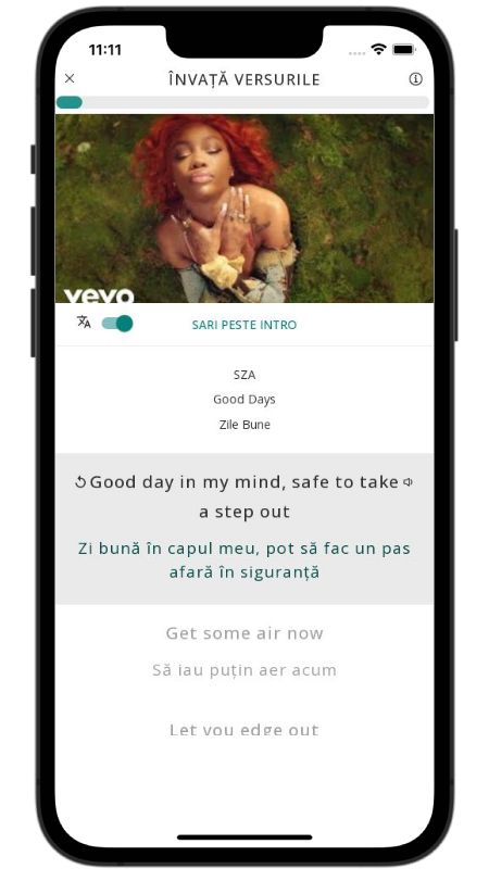 In addition to reading lyric translations, you can now learn English with music and lyrics from your favorite artists.
