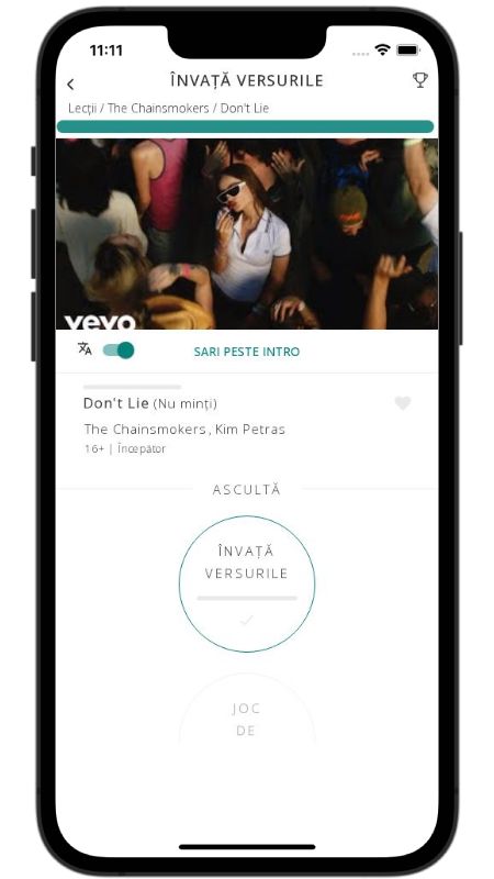 In addition to reading lyric translations, you can now learn English with music and lyrics from your favorite artists.