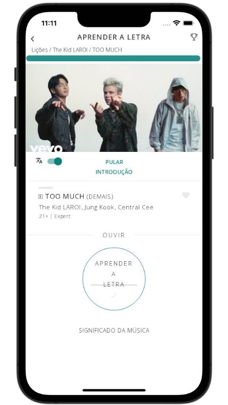 In addition to reading lyric translations, you can now learn English with music and lyrics from your favorite artists.