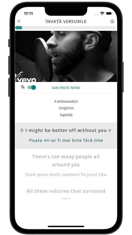 In addition to reading lyric translations, you can now learn English with music and lyrics from your favorite artists.