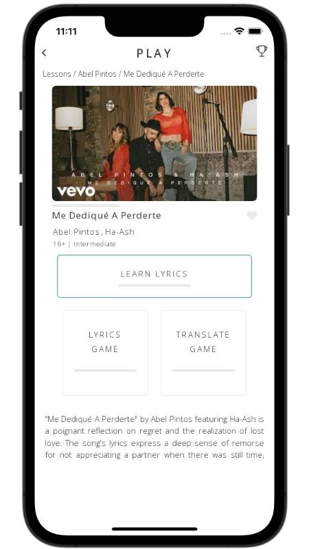 In addition to reading lyric translations, you can now learn Spanish with music and lyrics from your favorite artists.