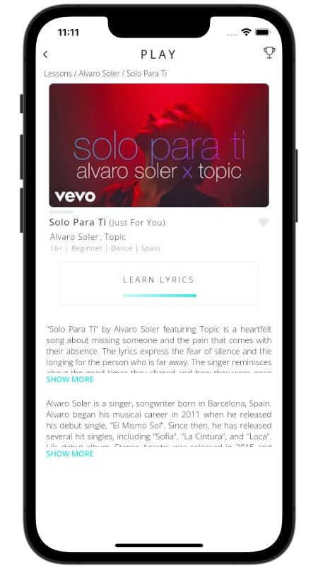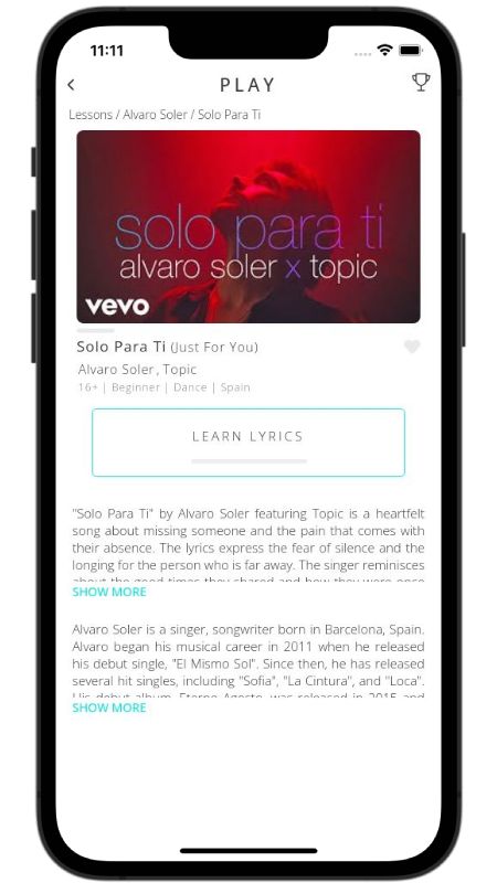 In addition to reading lyric translations, you can now learn Spanish with music and lyrics from your favorite artists.