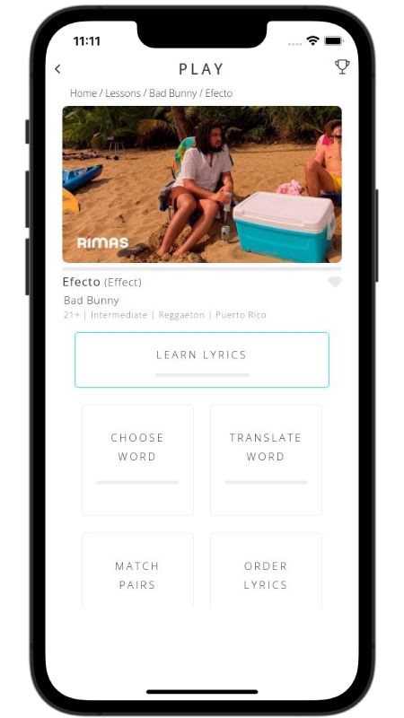 In addition to reading lyric translations, you can now learn Spanish with music and lyrics from your favorite artists.