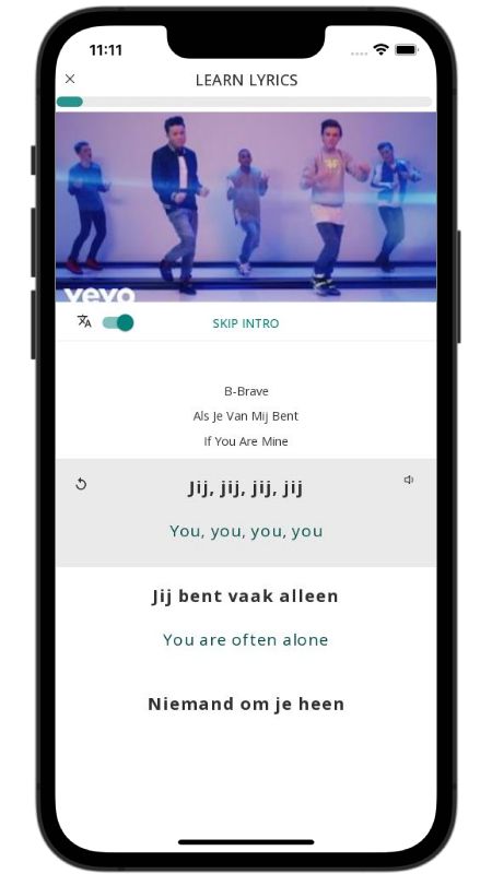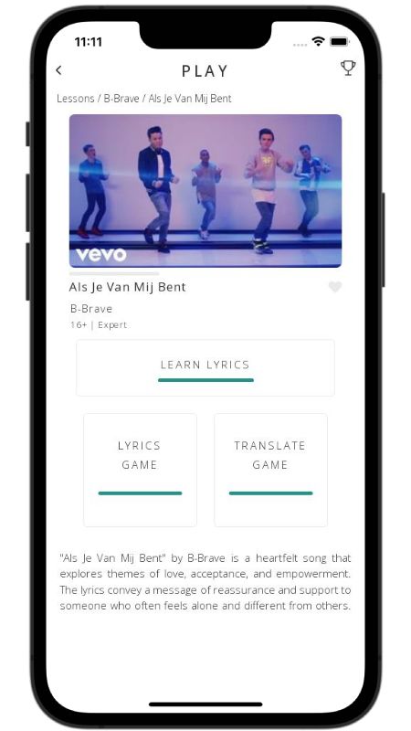 Als Je Van Mij Bent ("If You Belong To Me") is a bright, feel-good pop anthem by Dutch group B-Brave. The singer speaks directly to someone who often feels like an outsider - she dresses differently, stands alone at parties, and doubts her own beauty. He grabs her hand, pulls her close, and promises that from today she will never be alone again.