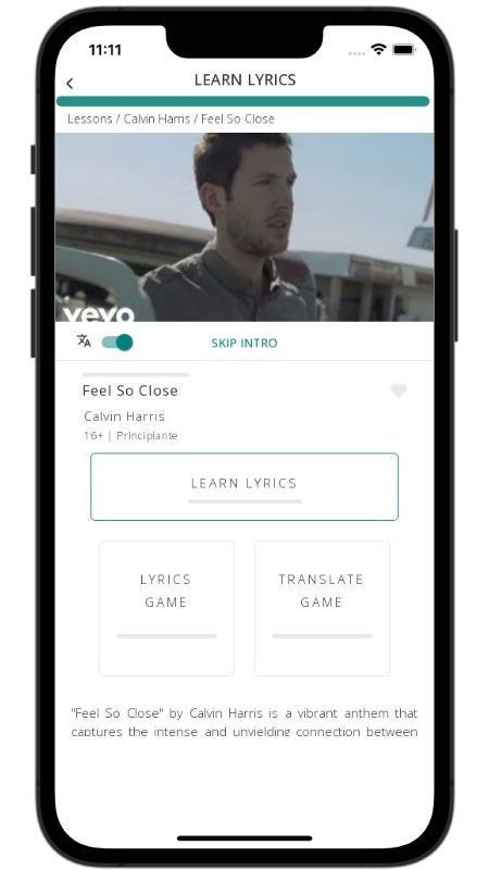 In addition to reading lyric translations, you can now learn English with music and lyrics from your favorite artists.