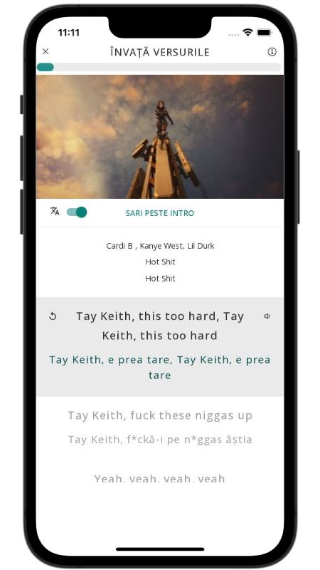 In addition to reading lyric translations, you can now learn English with music and lyrics from your favorite artists.