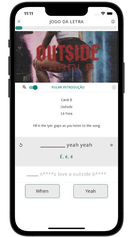Prepare-se para um hino de empoderamento da famosa rapper americana Cardi B! Em "Outside", ela fala sem papas na língua sobre a hipocrisia nos relacionamentos. A música critica homens que adoram uma mulher livre e divertida (uma "outside b***"*), mas não aceitam quando a sua própria parceira decide viver com a mesma liberdade. Cansada de jogos e de se sentir presa, Cardi B anuncia que agora é a sua vez de sair e aproveitar a vida.