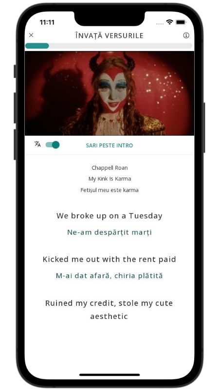 In addition to reading lyric translations, you can now learn English with music and lyrics from your favorite artists.