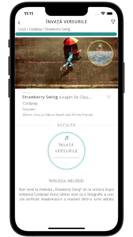 Bun venit la melodia „Strawberry Swing” de la celebra trupă britanică Coldplay! Acest cântec este ca o fotografie a unei zile perfecte. Imaginează-ți o evadare dintr-o lume agitată și conflictuală, direct într-un loc magic: un leagăn printre căpșuni. În timp ce lumea se mișcă în „linii perfect drepte”, cântecul ne invită să ne abatem de la drum, să găsim propriul nostru moment de bucurie pură și prețioasă. Este o odă adusă acelor clipe simple, dar de neuitat, petrecute alături de cineva special.