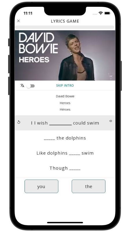 In addition to reading lyric translations, you can now learn English with music and lyrics from your favorite artists.