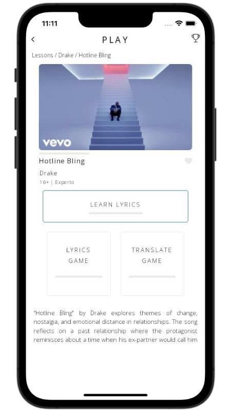 In addition to reading lyric translations, you can now learn English with music and lyrics from your favorite artists.
