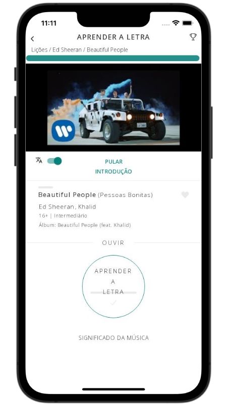 In addition to reading lyric translations, you can now learn English with music and lyrics from your favorite artists.