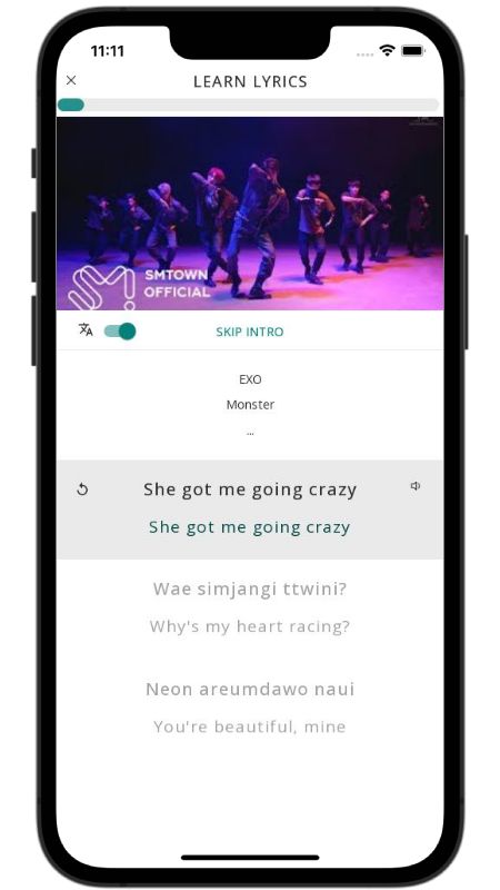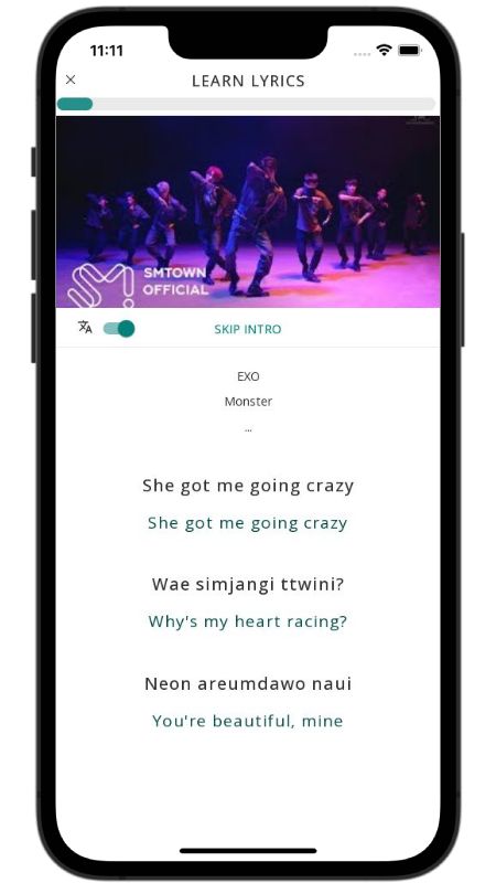 In addition to reading lyric translations, you can now learn Korean with music and lyrics from your favorite artists.