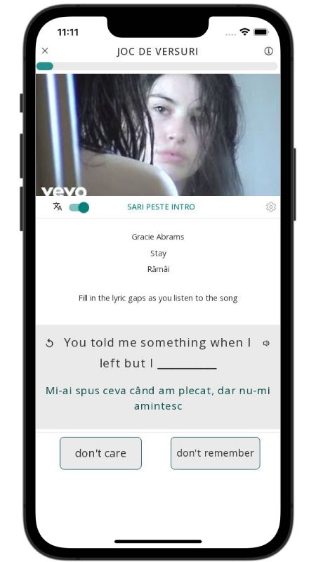 Bine ai venit la „Stay”, o baladă sinceră și melancolică a artistei americane Gracie Abrams. Ai simțit vreodată că ai atât de multe de spus cuiva, dar cuvintele pur și simplu nu ies? Acest cântec surprinde perfect acea emoție dureroasă de după o despărțire, plină de regrete și de dorințe nespuse. Naratoarea se gândește la ultimul lor moment împreună, la lucruri pe care ar fi vrut să le spună, cum ar fi „I'm sorry” (Îmi pare rău) sau „I miss you” (Mi-e dor de tine). Detalii mici, precum faptul că poartă hanoracul fostului iubit, ne arată cât de profundă este încă legătura ei emoțională.
