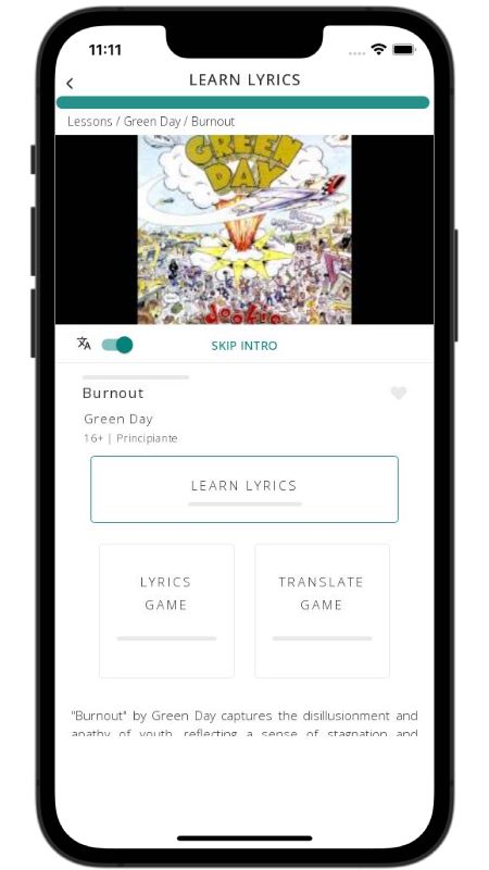 In addition to reading lyric translations, you can now learn English with music and lyrics from your favorite artists.