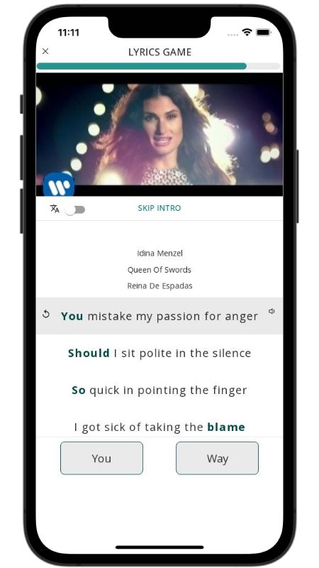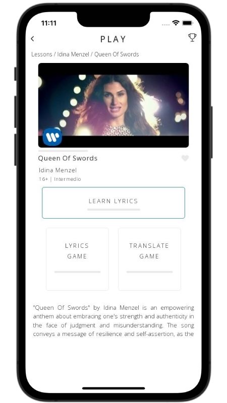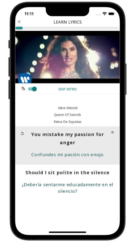 In addition to reading lyric translations, you can now learn English with music and lyrics from your favorite artists.