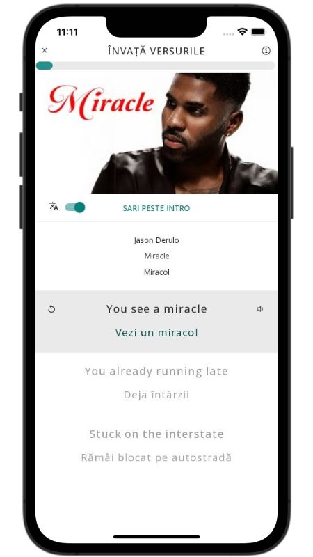 In addition to reading lyric translations, you can now learn English with music and lyrics from your favorite artists.