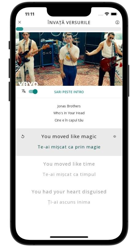 In addition to reading lyric translations, you can now learn English with music and lyrics from your favorite artists.