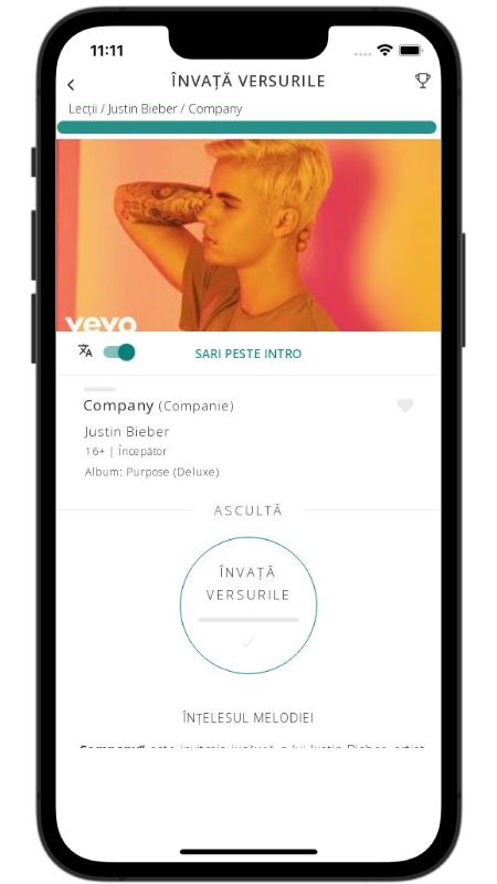 In addition to reading lyric translations, you can now learn English with music and lyrics from your favorite artists.