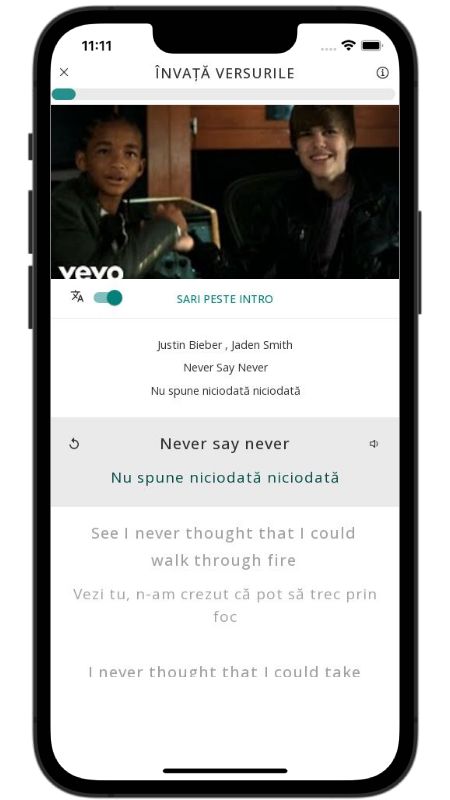 In addition to reading lyric translations, you can now learn English with music and lyrics from your favorite artists.
