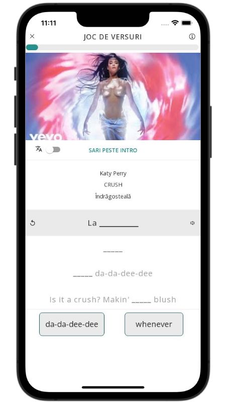CRUSH de Katy Perry este o explozie pop despre primele zvâcniri ale îndrăgostirii, atunci când totul pare dulce ca un vis cu bomboane și inima bate mai tare decât orice tobe. Versurile descriu acea stare electrizantă în care te întrebi: „E doar o pasiune sau chiar mă îndrăgostesc?”; fiecare atingere îți taie respirația, iar fluturii din stomac dansează pe refrenul jucăuș «la, da-da-dee-dee».