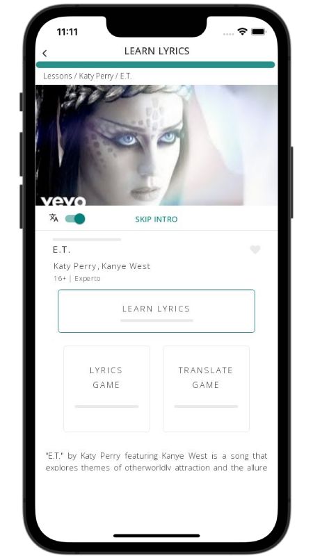In addition to reading lyric translations, you can now learn English with music and lyrics from your favorite artists.