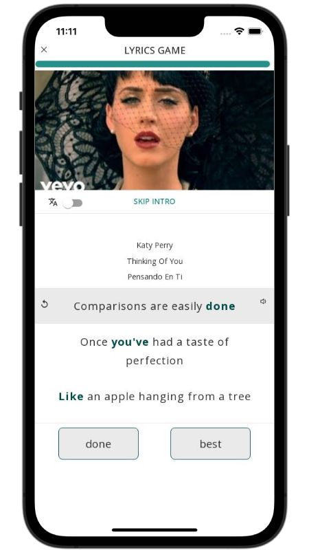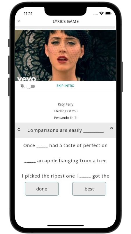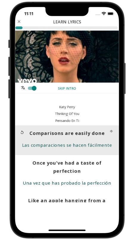 In addition to reading lyric translations, you can now learn English with music and lyrics from your favorite artists.