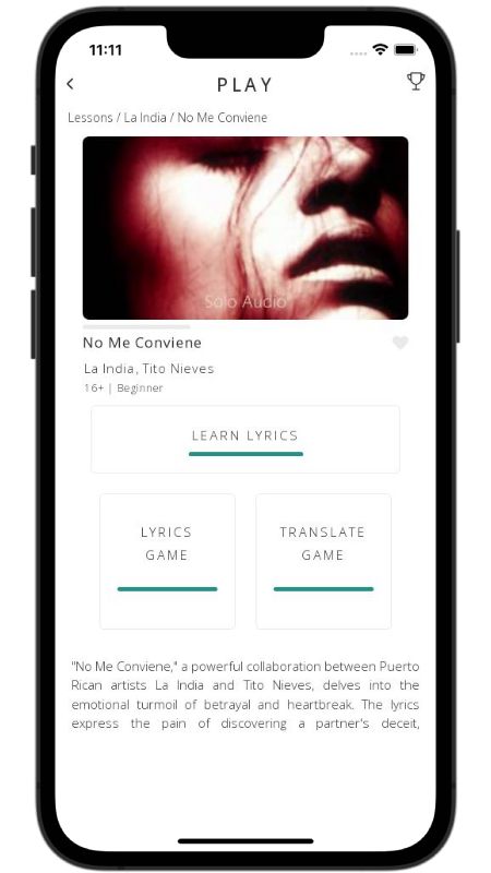 In addition to reading lyric translations, you can now learn Spanish with music and lyrics from your favorite artists.
