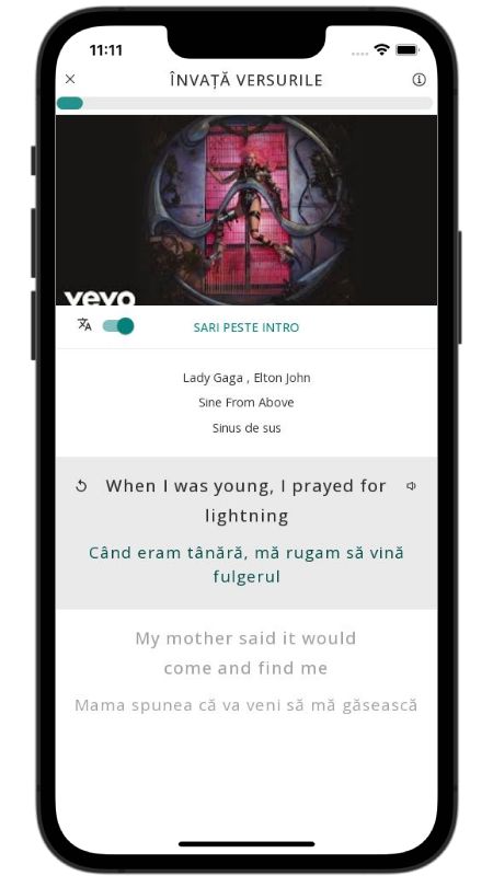 In addition to reading lyric translations, you can now learn English with music and lyrics from your favorite artists.