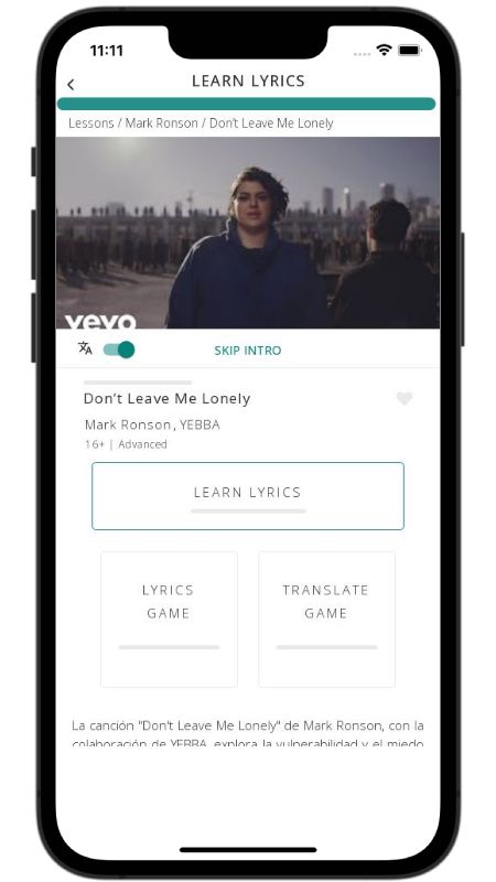 In addition to reading lyric translations, you can now learn English with music and lyrics from your favorite artists.