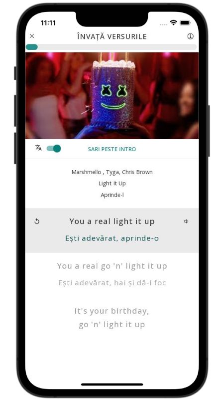 In addition to reading lyric translations, you can now learn English with music and lyrics from your favorite artists.
