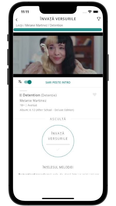 In addition to reading lyric translations, you can now learn English with music and lyrics from your favorite artists.