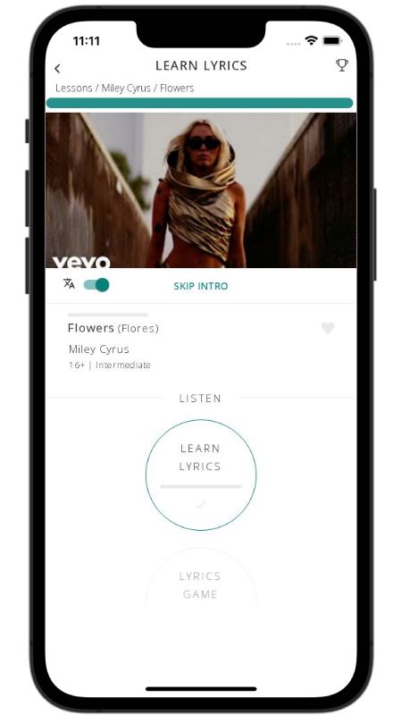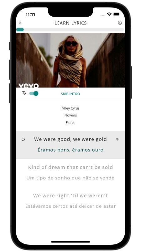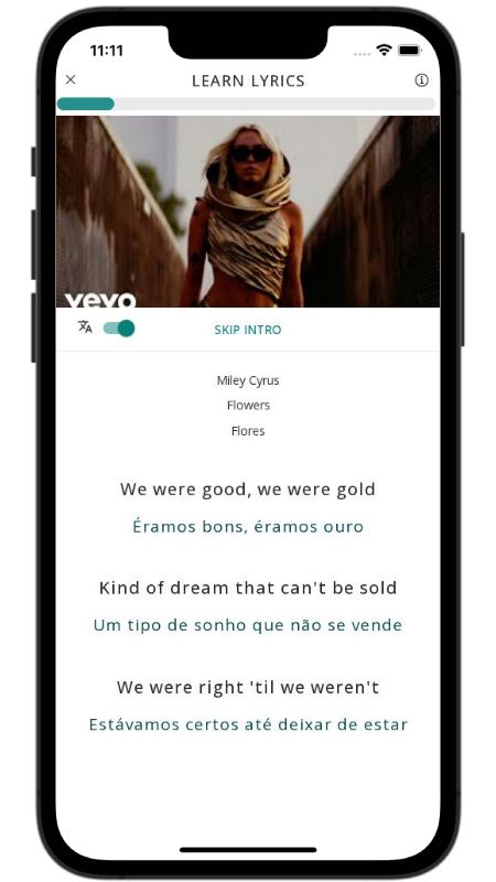 In addition to reading lyric translations, you can now learn English with music and lyrics from your favorite artists.