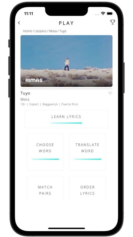 In addition to reading lyric translations, you can now learn Spanish with music and lyrics from your favorite artists.