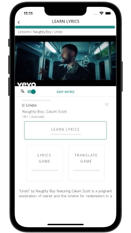 In addition to reading lyric translations, you can now learn English with music and lyrics from your favorite artists.