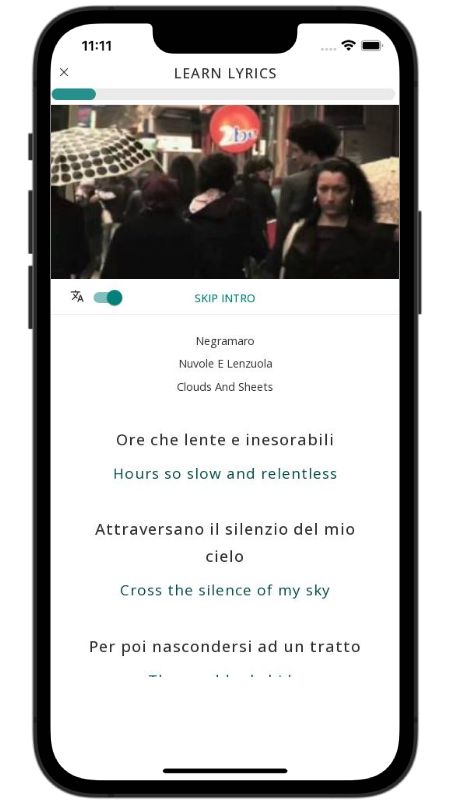In addition to reading lyric translations, you can now learn Italian with music and lyrics from your favorite artists.