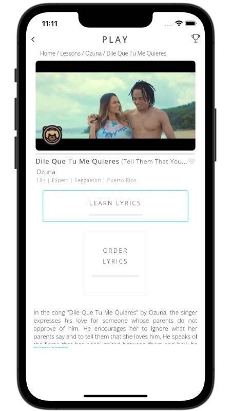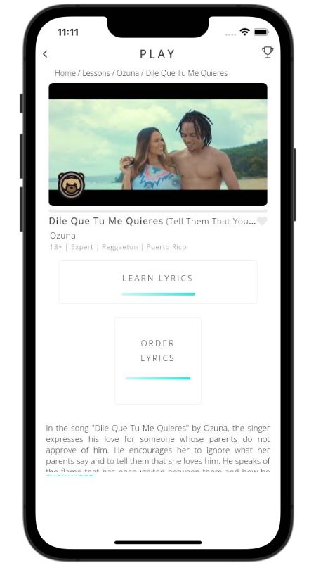 In addition to reading lyric translations, you can now learn Spanish with music and lyrics from your favorite artists.