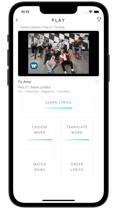 In addition to reading lyric translations, you can now learn Spanish with music and lyrics from your favorite artists.