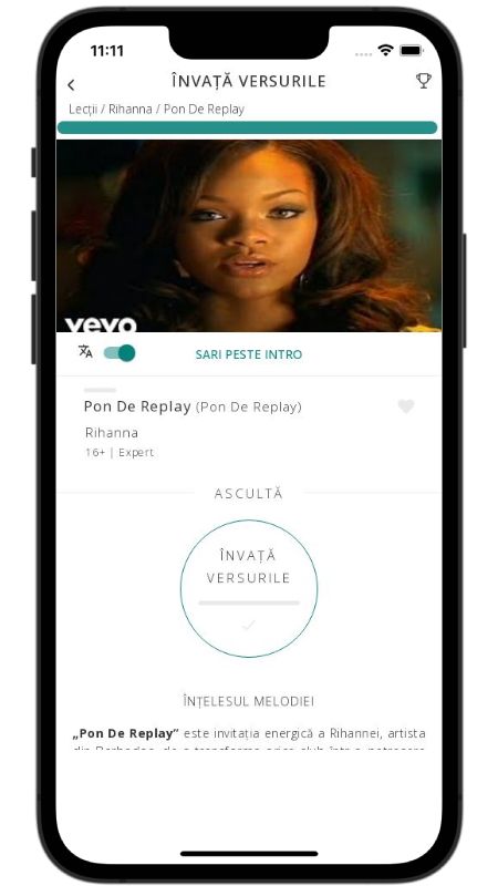 In addition to reading lyric translations, you can now learn English with music and lyrics from your favorite artists.