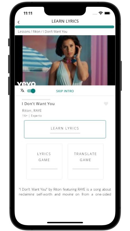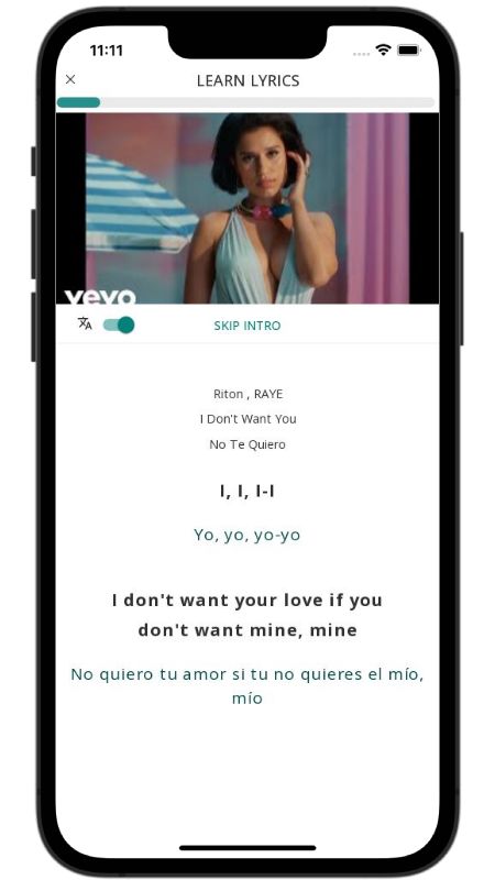 In addition to reading lyric translations, you can now learn English with music and lyrics from your favorite artists.