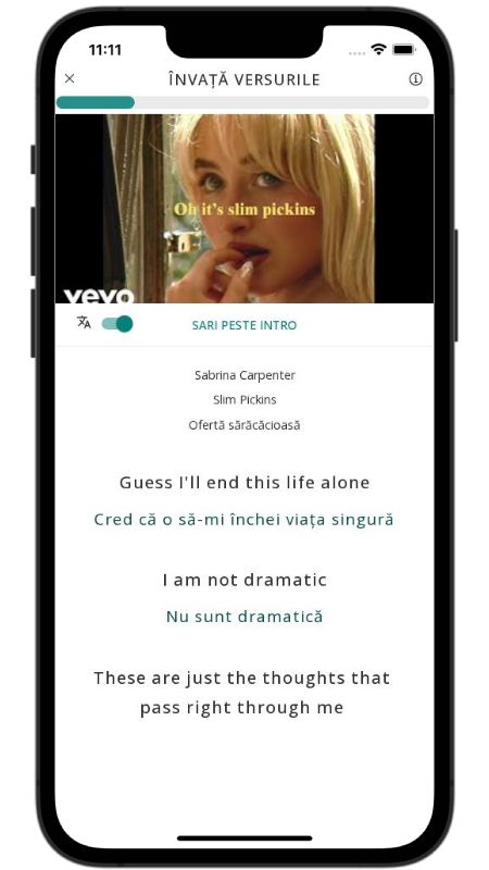 In addition to reading lyric translations, you can now learn English with music and lyrics from your favorite artists.